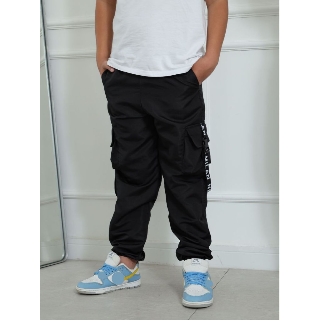 KIT 2 Calça Infantil Moda Masculina Menino Tactel Jogger Blogueiro Bolsos Cargo Fita Moda Gringa Europa T