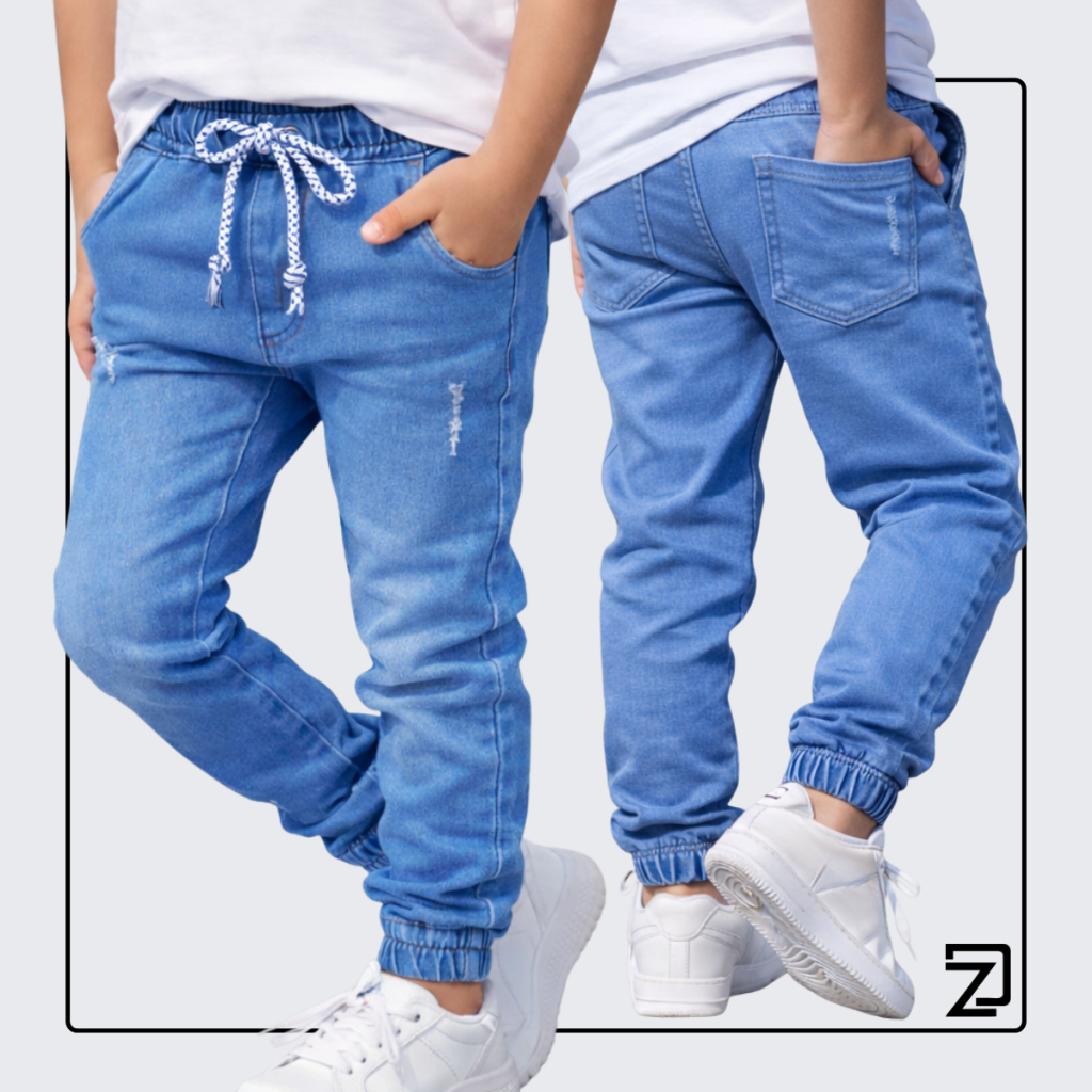 Kit 2 Calça Jogger Punho Jeans Sarja Infantil Masculino