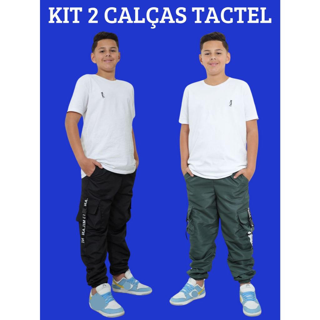 Kit 2 Calça Juvenil Jogger Cargo Infantil Menino Preta Verde Bege Tamanho 10 12 14 Anos 4 Bolsos Blogueiro Street Moda T