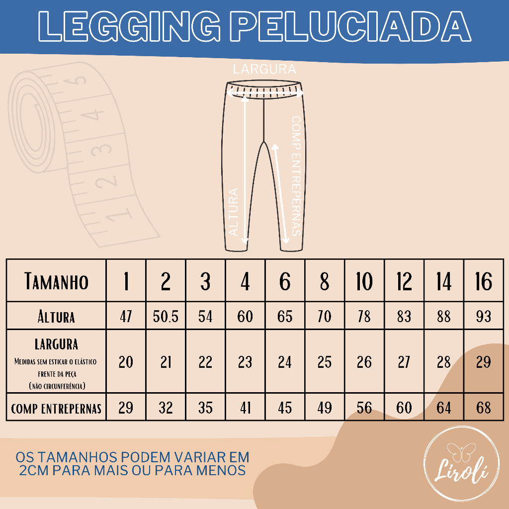 Obrigada por escolher a Lirolí Kids :) Leggings lindas, de suplex, peluciadas, super confortáveis e quentinhas, ideais para os dias de frio ☃️ Disponíveis nas cores, cinza, azul marinho e preto, nos tamanhos 1 ao 16. TEMOS TODOS OS PRODUTOS A PRONTA ENTREGA E O ENVIO É IMEDIATO! ENVIAMOS PARA TODO O BRASIL. SERÁ ENVIADO NO TAMANHO SELECIONADO. Evite devoluções, confira nossa tabela de tamanhos disponível no rolo das fotos. ________________________________________ CONTÉM: Calça Legging de Suplex Peluciada Cores: Marsala, Cinza, Azul Marinho, Preto, Verde Bandeira, e Azul Royal Composição: 90% poliéster / 10% elastano Cintura: com elástico ——————————————————————