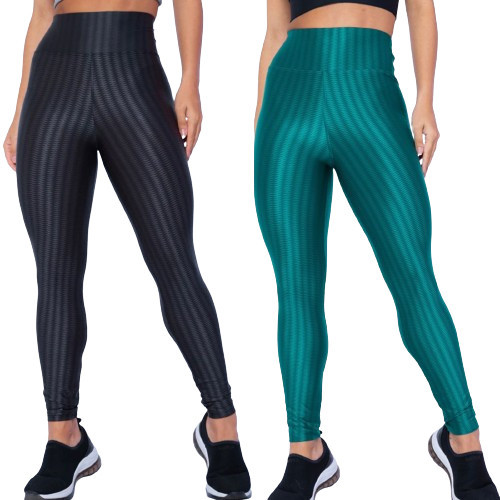 Kit 2 Calça Legging 3D Zig Zag Feminina Academia Treino Corrida Cintura Alta