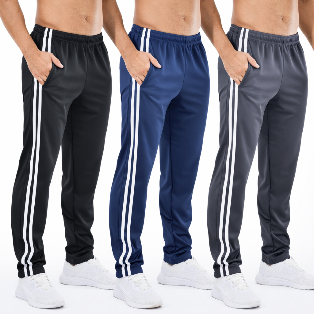FABRICAÇÃO PRÓPRIA Kit com 2 Calças para atividade Física, academia, corrida e trabalho. * Você Efetua a Compra, Escolhe Tamanho e Cor no ato. Depois Disso é só Chamar no CHAT, que Enviamos as Cores das Listras Disponíveis na Cor e Tamanho que Você Comprou, caso não chame no Chat enviaremos seu pedido com as listras de acordo com a disponibilidade de estoque. * Conheça um pouco sobre a nossa peça. TAMANHOS: P-M-G-GG 1 BOLSO LATERAL COM ZÍPER QUE PERMITE GUARDAR CELULAR, CARTEIRA E OUTROS ITENS PEQUENOS (PERNA ESQUERDA). GRAMATURA: 350 (MALHA LEVE). COMPOSIÇÃO: 100% POLIÉSTER. CÓS: ELÁSTICO E CORDÃO PARA AJUSTE. 2 LISTRAS EM CADA LATERAL (COR DA LISTRA VARIADA). "OBS: CONSULTAR NO CHAT A DISPONIBILIDADE DA COR DA LISTRA QUE DESEJAR." ENVIO RÁPIDO! Aproveite a promoção! Preço baixo e Alta qualidade!