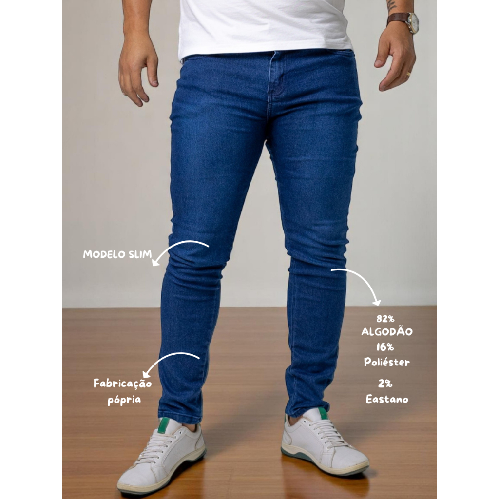 KIT 2 CALÇAS MASCULINAS JEANS ELASTANO ORIGINAL MARCA LIONS JEANS ATENÇÃO : PEDIR UM TAMANHO ACIMA DO QUE ESTÁ ACOSTUMADO OU MEDIR CONFORME ORIENTAÇÃO NO TEXTO ABAIXO> Pegue uma PEÇA sua, abra-a sobre uma superfície plana, faça as medições de uma ponta a outra l-----------l e compare com a tabela DE MEDIDAS QUE ESTÁ ENTRE AS ULTIMAS FOTOS DO ANUNCIO para saber o seu número! Especificações Técnicas: Material: 82% Algodão, 16% Poliéster, 2% Lycra Cor: AZUL ESCURO e PRETO Corte: SLIM FIT ( Não confundir com calça reta masculina, Não confundir com calça jeans alfaiataria) Tecido Elástico: A adição de Lycra oferece flexibilidade e conforto excepcionais, permitindo movimentos livres e sem restrições ao longo do dia. Bolsos: Dois bolsos laterais e dois bolsos traseiros. GUIA DE TAMANHOS OBS: Pegue uma calça jeans sua, abra-a sobre uma superfície plana, faça as medições de uma ponta a outra l-----------l e compare com a tabela para saber o seu número! Temos muitos modelos disponíveis, em vários tons de jeans, e diversos lavados. Nossa equipe estará sempre focada em melhor atendê-lo, conquistando sua confiança e construindo uma parceria duradoura e satisfatória. GARANTIA DE SATISFAÇÃO: Caso haja qualquer problema, nós, da LIONS JEANS iremos te auxiliar no que for possível. Escolha o modelo que mais lhe agrada, estamos on-line! FAQ (Perguntas Frequentes): 1)Esses modelos estão disponíveis em diferentes tamanhos? Sim, oferecemos vários tamanhos disponíveis: 36/38/40/42/44/46/48 para atender às necessidades de diferentes tipos de corpo. Temos disponibilidade em todos os tamanhos para pronta entrega. calça preta masculina - calça jeans preta masculina - calça jeans masculino - calsa jeans masculina - calça slim masculina. 2) Este Jeans Masculino é adequada para uso casual e formal? Sim, a Calça Jeans Masculina Preto com Lycra é versátil o suficiente para ser usada em diversos ambientes seja a passeio, festa ou trabalho. O corte SLIM FIT e a cor preta proporcionam um visual sofisticado. calça jeans masculina trabalho - calça dins masculina 3) O produto é original ? R: Sim, todos nossos produtos são originais e de fabricação própria. 4) O produto não serviu, posso trocar ? R: Sim, o produto pode ser devolvido para a nossa loja, e o seu dinheiro é reembolsado para que você compre novamente no tamanho necessário. Roupa Masculina - homem - calça masculina jeans tradicional 5) O produto possuí garantia ? R: Sim, todos os nossos produtos contam com garantia de 30 dias a partir da data de entrega. 6) O tecido é resistente? Resposta: Sim, nossas peças são fabricadas com tecidos PREMIUM com elastano/lycra na composição para deixar ainda mais confortável. calça jeans masculina tradicional 7) Como devo cuidar dessa calca Masculina para garantir sua durabilidade? Recomendamos lavar essa calca slim com cores semelhantes e evitar o uso de alvejante. Além disso, vire-a do avesso antes de lavar para preservar a cor e evitar o desgaste excessivo. 8) A Lycra Elastano nesta calça proporciona conforto durante todo o dia? Sim, a Lycra adicionada ao tecido oferece elasticidade e flexibilidade, permitindo que a calça se ajuste confortavelmente ao seu corpo e acompanhe seus movimentos ao longo do dia, sem comprometer o estilo.