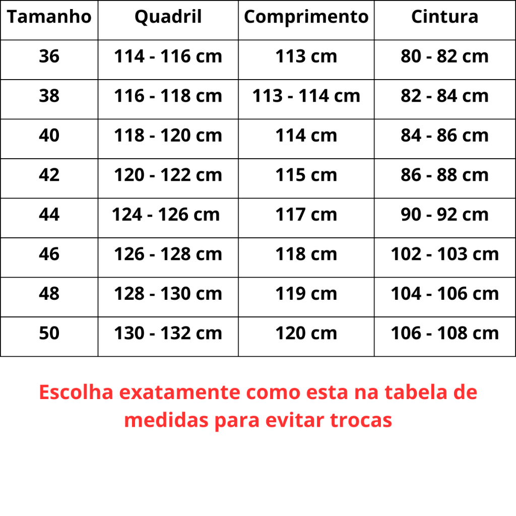 Tabela rápida para você comparar este item com outros similares de Calças dentro do nosso catálogo.