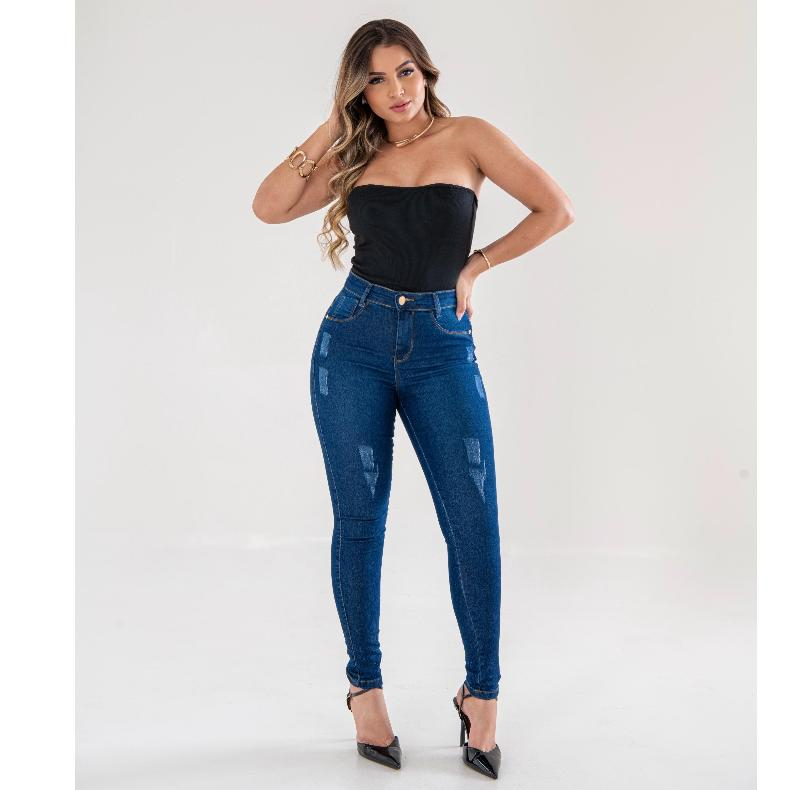Kit 2 Calças Jeans Feminina Skinny Puido e Clara Elastano Cintura Alta Efeito Levanta Bumbum