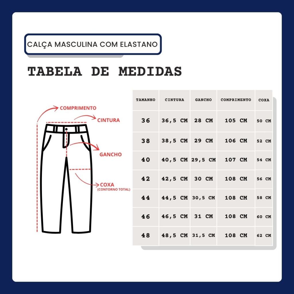 IMPORTANTE: Recomendamos comprar um número acima do seu tamanho se estiver com dúvidas. Kit 2 Calças Jeans Masculina Azul Com Elastano Lycra Trabalho/Passeio Promoção Envio Imediato Direto da Fábrica ITENS DO PACOTE: 2 Calças Azul Masculina. COR: Azul COMPOSIÇÃO DA CALÇA: 74% Algodão, 24% Poliéster, 2% Elastano. ATENÇÃO: Para garantir a durabilidade da sua calça jeans, evite lavá-la em máquinas lava e seca. O calor excessivo pode comprometer o tecido e a elasticidade, reduzindo a vida útil do produto. Lave à mão ou na máquina de lavar em ciclo delicado e deixe secar naturalmente. DIFERENCIAIS DA CALÇA: 1) ALTA RESISTENCIA: O elastano tem maior durabilidade e deixa o jeans mais duradouro! 2) SECAGEM RÁPIDA: Sua composição de 74% Algodão, 24% Poliéster, 2% Elastano, essa composição favorece a secagem, o que agiliza muito no seu dia a dia. 3) MATERIAL: Não amassa e não laceia, com isso você terá mais durabilidade e conforto ao vestir! 4) NÃO DESBOTA: O elastano não deixa desbotar e não perde sua cor gerando maior durabilidade da calça. DÚVIDAS FREQUENTES: 1 – É recomendado pegar um tamanho maior ou menor? Resposta: Sim, recomendamos comprar um tamanho maior que o habitual. 2 – O tecido é resistente? Resposta: Sim, nossas peças são fabricadas com tecidos resistentes 74% Algodão, 24% Poliéster, 2% Elastano na composição para deixar ainda mais confortável. 3 – Eu preciso de tamanhos diferentes. Como fazer sem pagar vários fretes? Você precisa adicionar um tamanho por vez em seu carrinho e depois fazer uma compra só no final. 4 – Tem os produtos a pronta entrega? Em quanto tempo o produto será enviado? Resposta: Sim, temos todas as peças a pronta entrega para envio imediato. Após efetuar a compra, seu pedido será postado em no máximo 24 horas uteis. 5 – Preciso de várias calças porem em tamanhos diversificados. Tem como? Tem sim, é só adicionar um tamanho por vez em seu carrinho e depois fazer uma compra só. MAIS DÚVIDAS: É só nos chamar no chat que responderemos o mais rápido possível.