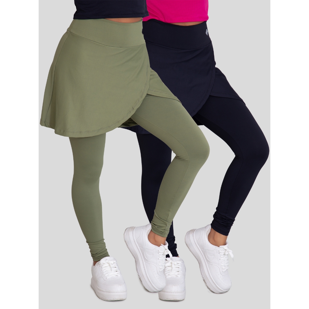 Kit 2 Calças Legging Saia de Poliamida Moda Feminina e Evangelica Fitness