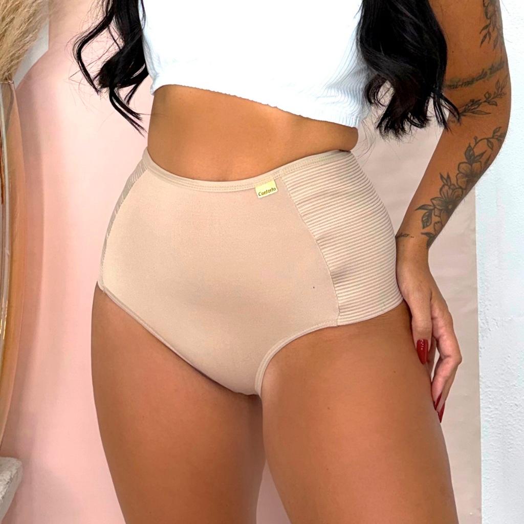 Kit 2 Calcinhas Modeladora Cintura Alta Cinta Compressão Cós Redutora