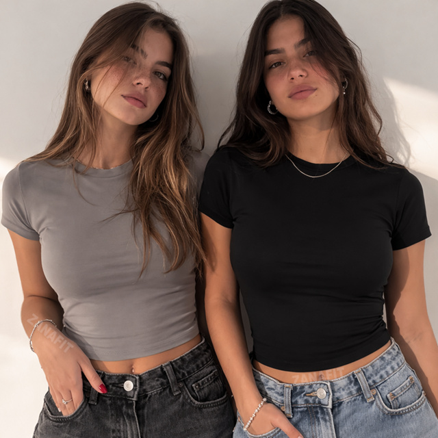 Kit 2 Camisa Baby Look Feminina Blusa Slim Fit Manga Curta Baby Tee Academia