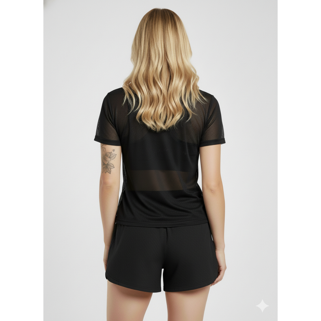 Kit 2 Camisa Fitness Feminino Academia Transparente Tule Tapa Bumbum Liso Treino