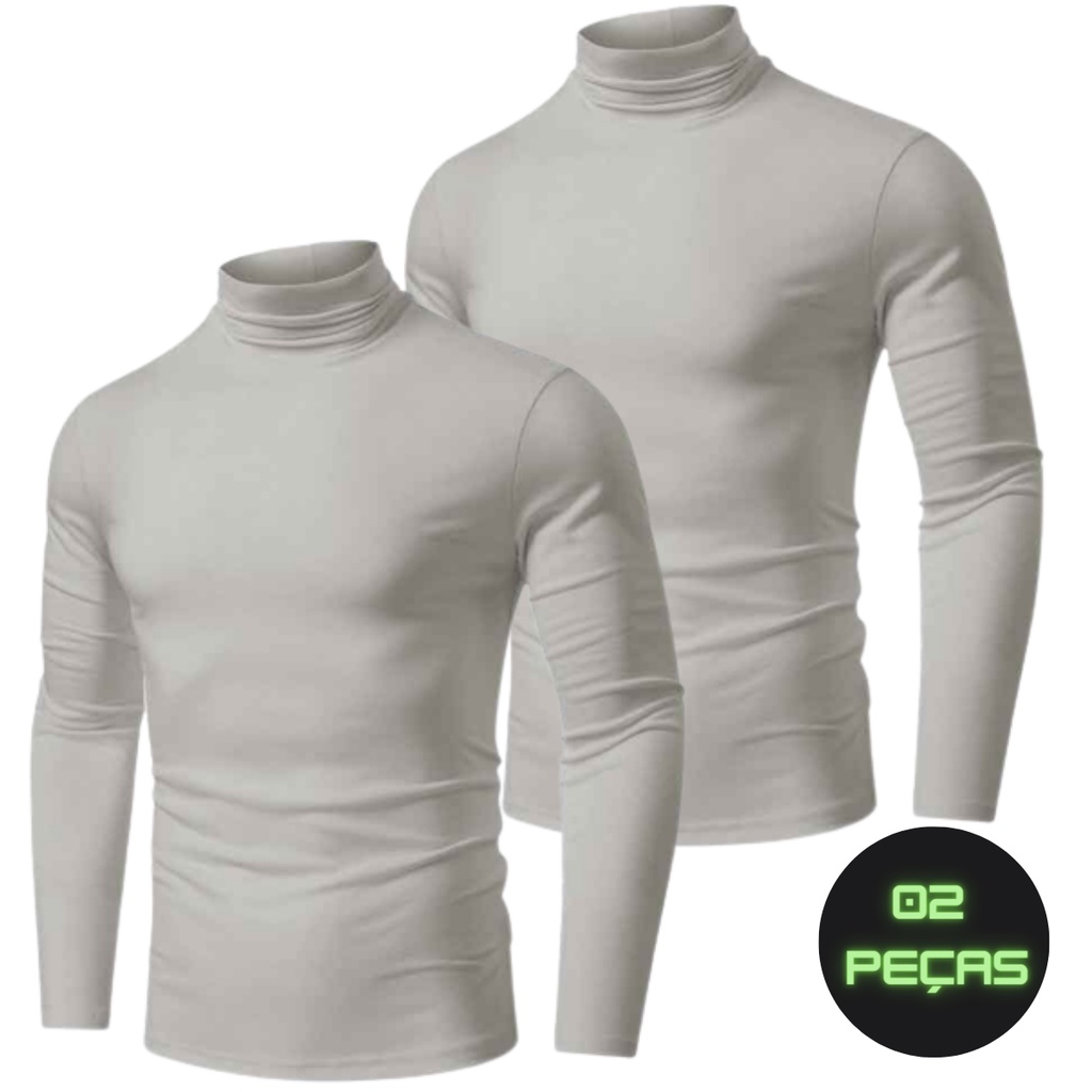 Kit 2 Camisa Gola Alta Blusa Masculina Manga Longa Camiseta Academia Segunda Pele Proteção Solar Fator 50 UV Gola Alta