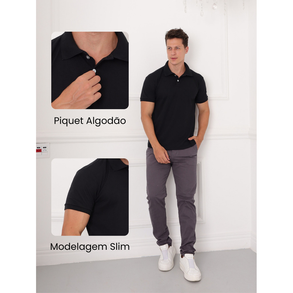 Kit 2 Camisas Gola Polo Masculina Algodão Piquet Confortável Casual Algodão confortável
