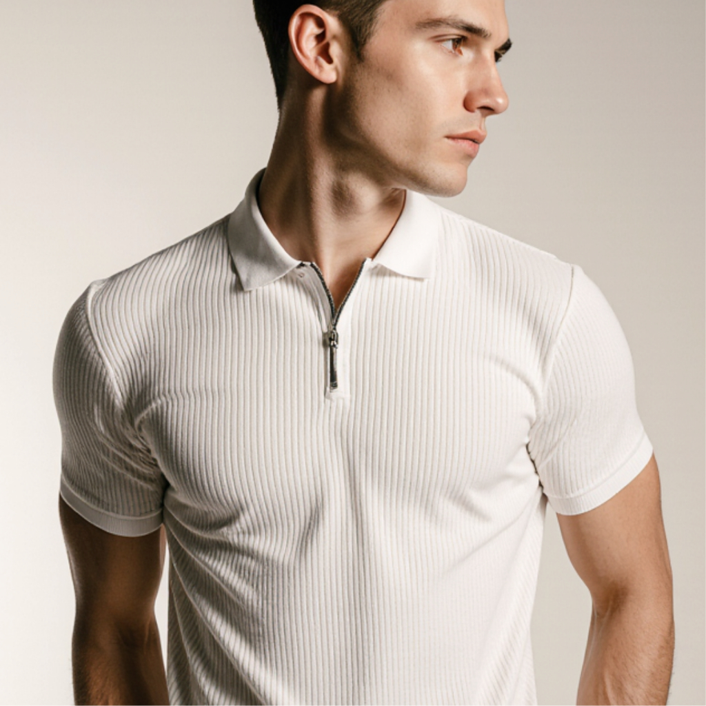 Camiseta Polo Masculina Manga Curta com Zíper – Malha Canelada Slim Premium Eleve seu estilo com esta polo masculina moderna, confeccionada em malha canelada premium e modelagem slim fit, que valoriza o corpo sem perder o conforto. O destaque fica por conta do zíper frontal, substituindo os botões tradicionais e trazendo um visual sofisticado, atual e estiloso. ✨ Características do Produto - Gola Polo Premium com fechamento em zíper - Modelagem Slim Fit: caimento ajustado e elegante - Tecido Canelado: confortável, elástico e com ótima durabilidade - Toque Macio e agradável à pele - Cor: Preto ou Branco, fácil de combinar com qualquer look - Manga Curta ideal para dias quentes - Estilo moderno e minimalista 💎 Benefícios - Visual mais refinado e contemporâneo - Excelente para compor looks casuais ou estilosos - Peça versátil: combina com jeans, bermuda, sarja e até alfaiataria leve - Leve, confortável e com elasticidade ideal - Mantém boa aparência mesmo após várias lavagens 📐 Tamanhos - Modelagem slim, ajustada ao corpo - Recomendação: se preferir caimento mais solto, escolha um tamanho acima 🧼 Cuidados - Lavar com água fria - Não usar alvejante - Secar à sombra