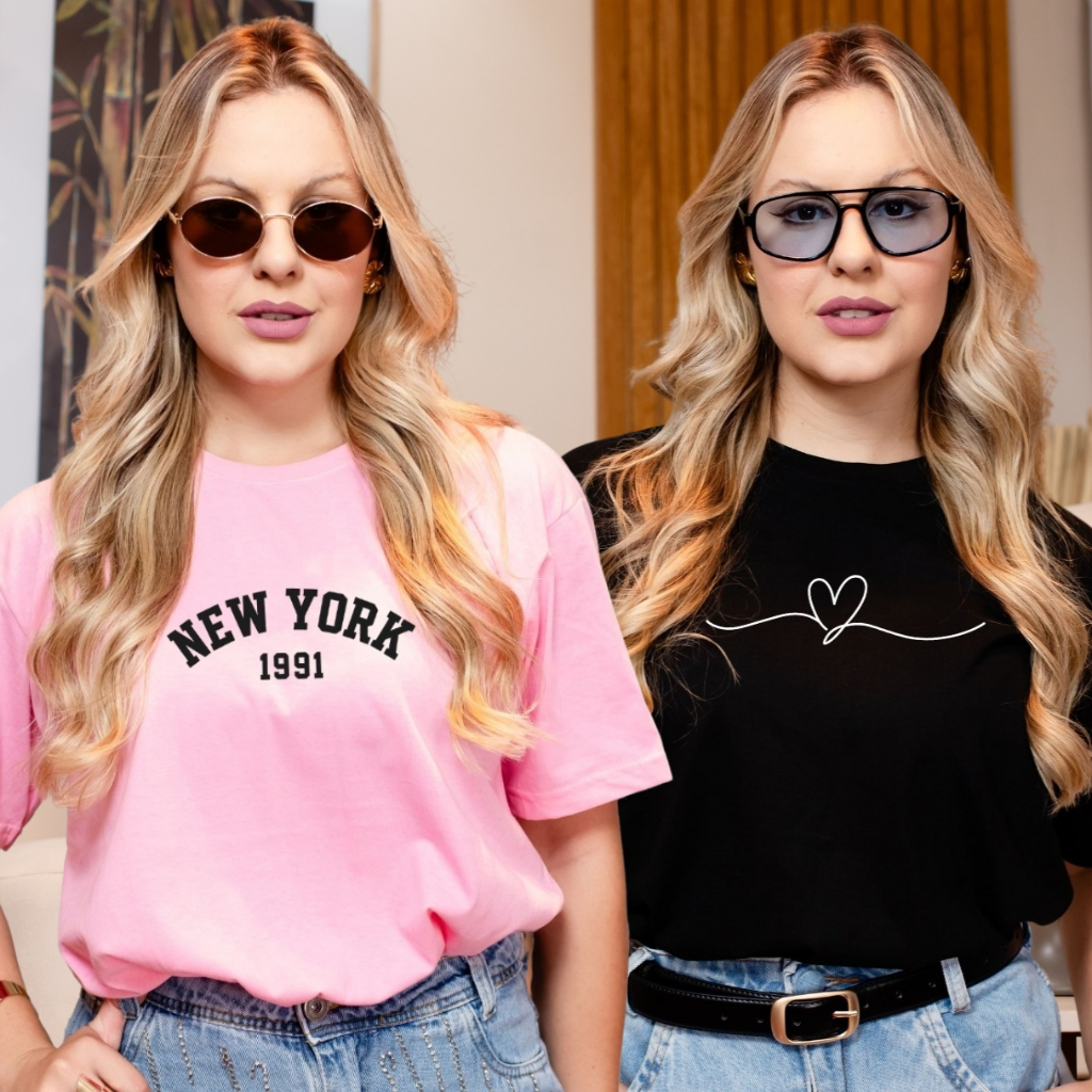 Kit 2 Camiseta Feminina Estampada 100% Algodão Blusa Várias Cores Envio Imediato