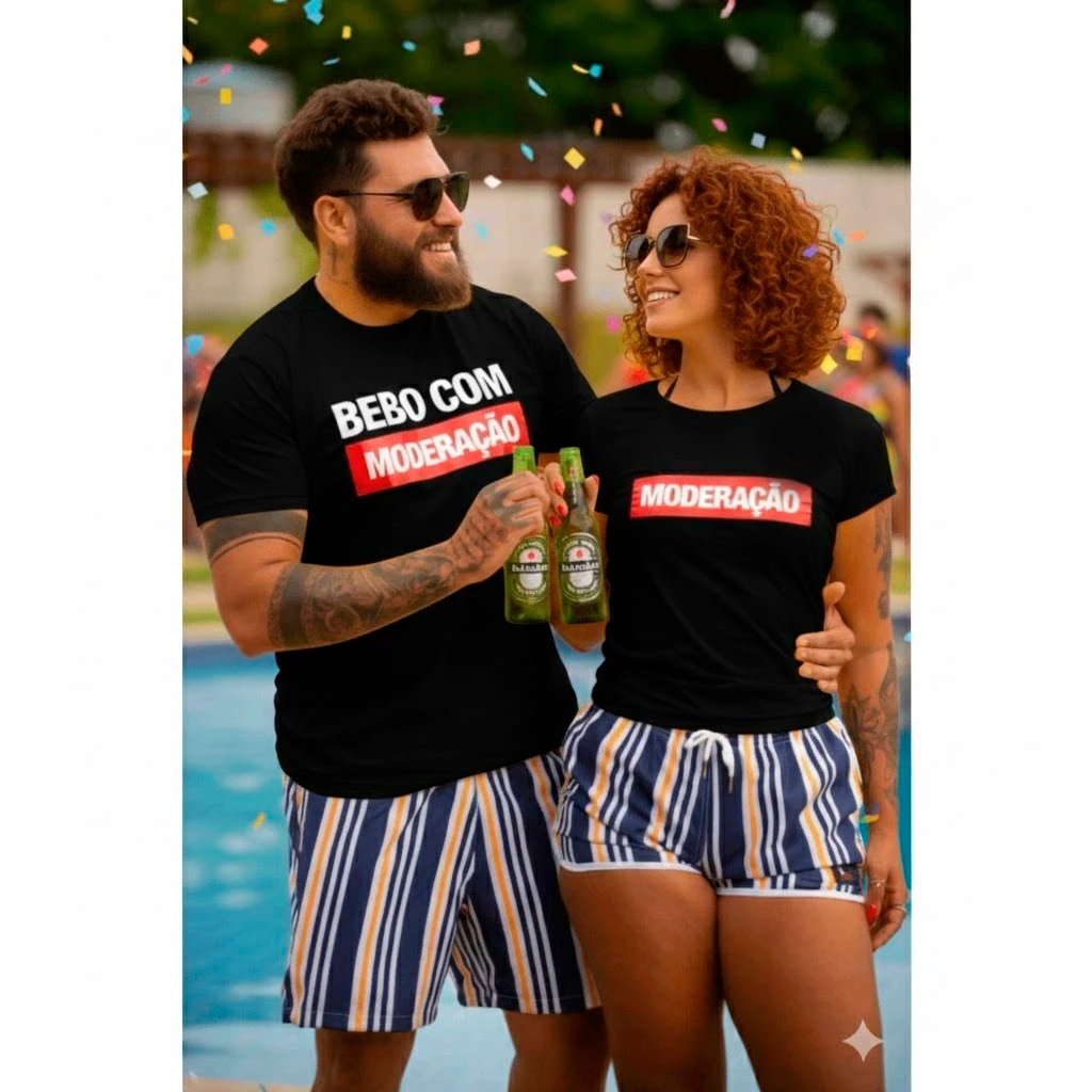 Kit 2 Camiseta Invicto Casal Carnaval Frase Criativa "Bebo com Moderação" | Unissex 100% Algodão