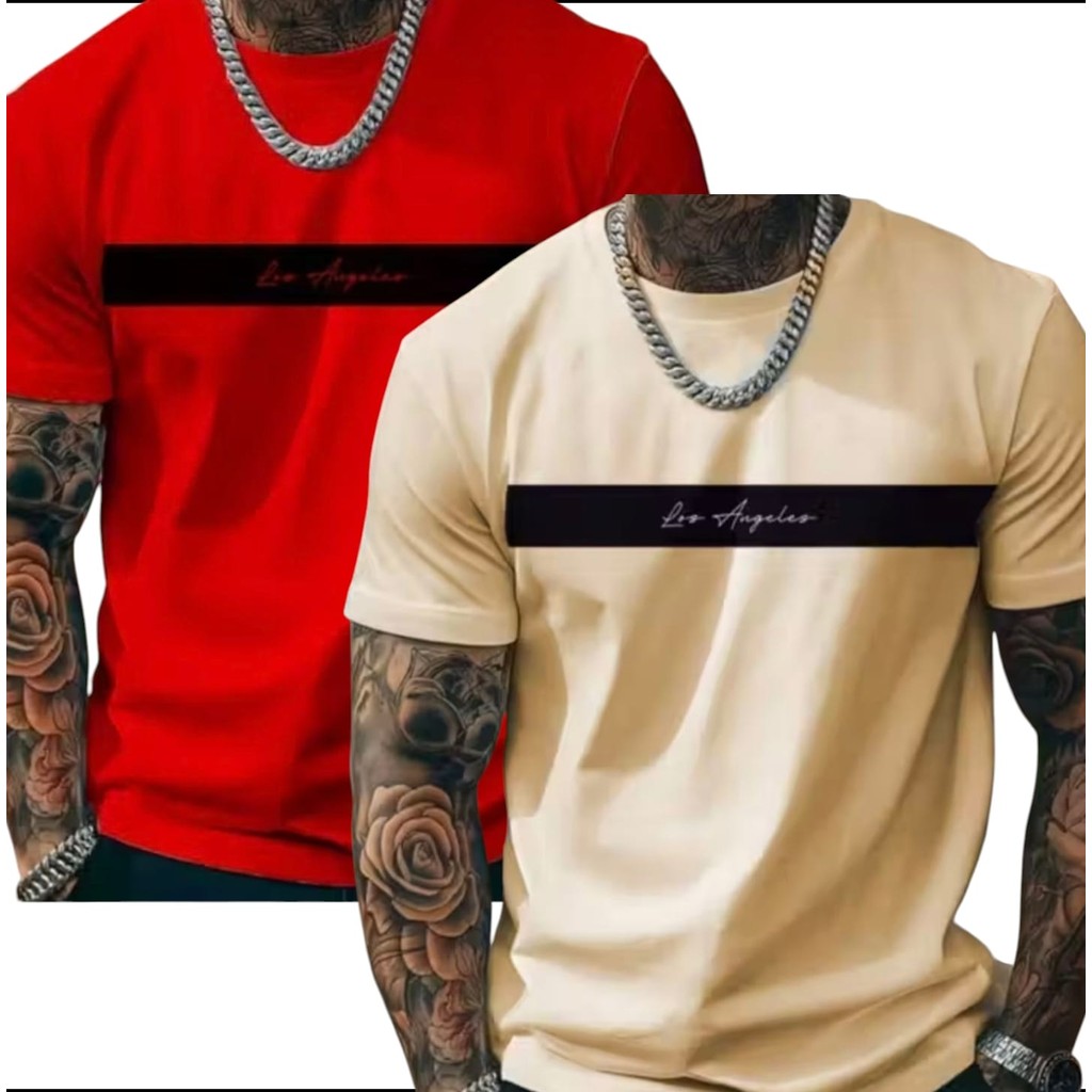 KIT 2 Camiseta Masculina Blusa 100% Algodão Los Angeles Confortavel Premium VERMELHA E BRANCA