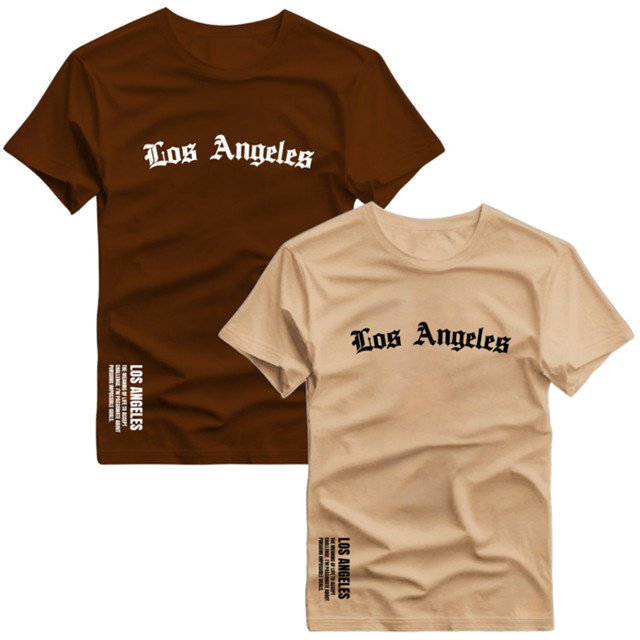 Kit 2 Camiseta Masculina Los Angeles Casual Estampada em DTF Malha Algodão 30.1