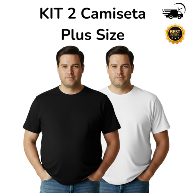 Kit 2 Camiseta Plus Size Masculina 100% Algodão