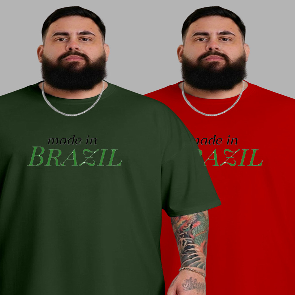 Kit 2 Camiseta Plus Size Masculina P ao G5 Camisa Brasil Basica Algodão Envio Imediato