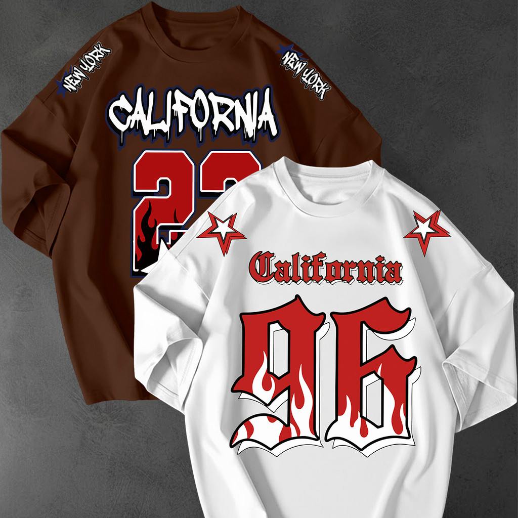 Kit 2 Camisetão Oversized Streetwear Estampa California 96 Chamas Unissex Solta Academia Gyn Urbana