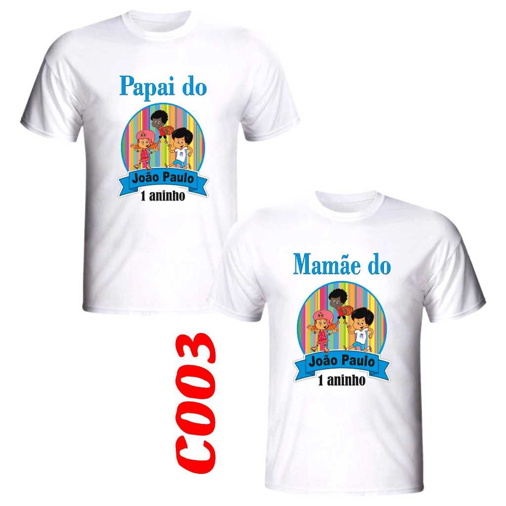 LEIA TODA A DESCRIÇÃO Camiseta Branca 100% Poliéster Personalizada. Como escolher a personalização: 1° - Escolha o tema pelo código que está na imagem e nas opções de seleção. 2° - Informe nome e idade do aniversariante e os tamanhos das camisetas por Parentescos. Exemplo: William 3 anos Camiseta G Papai Babylook GG Mamãe Tamanho 16 Irmão, etc. Pode ser qualquer parentesco: Ex: vovô, vovó, padrinho, primo, amigo, etc. A produção é toda em Camisetas Unissex. Para personalização em babylook feminina informe como no exemplo acima. Caso contrário é produzida em Unissex. ********************************* Medidas disponíveis: body Infantil: P - M - G - GG Camisetas Unissex: 2 anos - 4 anos - 6 anos - 8 anos - 10 anos - 12 anos - 14 anos - 16 anos P - M - G - GG Baby Look Feminina P - M - G - GG Temos tamanhos maiores porém os valores mudam ex: EXG - EXG2 - EXG3 *Consulte -nos antes da compra! ********ATENÇÃO********* Outros Temas, consulte no Chat