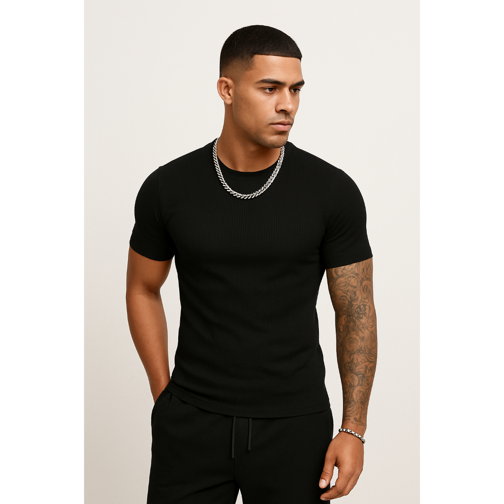 Kit 2 Camisetas Caneladas Masculinas Slim Fit – Preta e Branca, Tecido Premium e Caimento que Valoriza