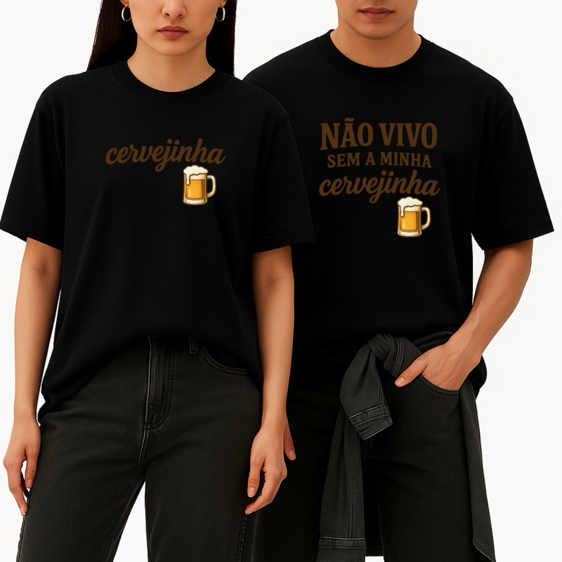 Mostre todo o amor e bom humor do casal com essa camiseta super estilosa e confortável! Feita em malha de algodão premium, a camiseta garante maciez, durabilidade e caimento perfeito para qualquer ocasião — seja para um rolê descontraído, um churrasco com amigos ou um brinde a dois. Disponível nas cores branca, preta e bege, ela combina com qualquer look e traz um toque divertido com a estampa “Cervejinha” e “Não vivo sem a minha cervejinha”, perfeita para casais que adoram compartilhar momentos leves e felizes. 🧡 Detalhes do produto: • Modelagem unissex (primeiro tamanho da variação sempre é o feminino) • Material: 100% algodão de alta qualidade • Cores: Branca, Preta e Bege • Estampa em alta definição, resistente à lavagem • Ideal para presentear seu amor ou usar em casal 📏 Importante: Caso queira o modelo feminino em tamanho maior, entre em contato pelo Chat antes de finalizar o pedido. ✨ Confortável, divertida e cheia de personalidade — a camiseta “Cervejinha” é a escolha certa pra quem ama curtir a vida a dois!