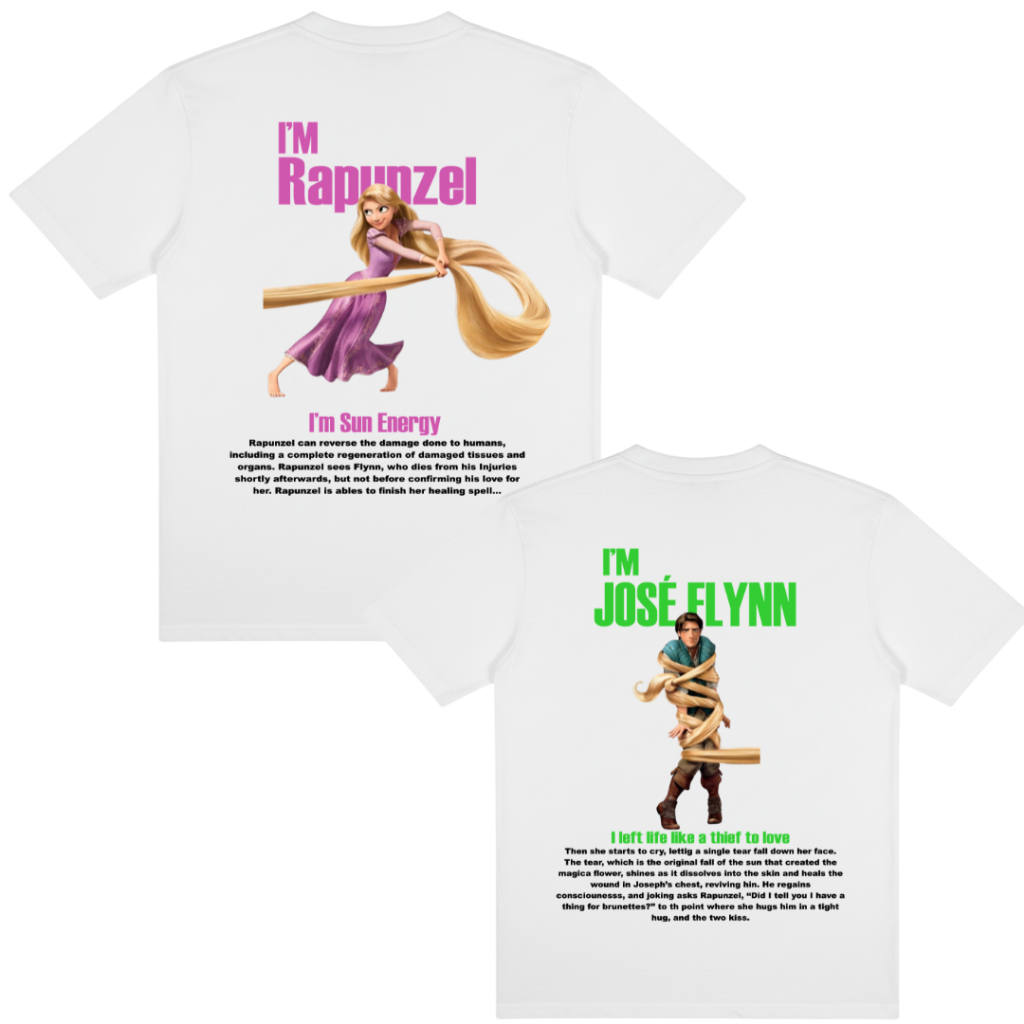 Kit 2 Camisetas Conjuntos De Casal camisetas Feminino e Masculino streetwear Rapunzel e José Flynn