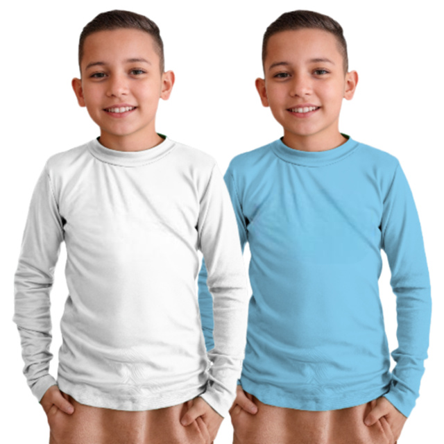 Kit 2 Camisetas Infantil Menino Manga Longa Inverno Básica Lisa Tamanho 2 ao 12, Camisa 100% algodão