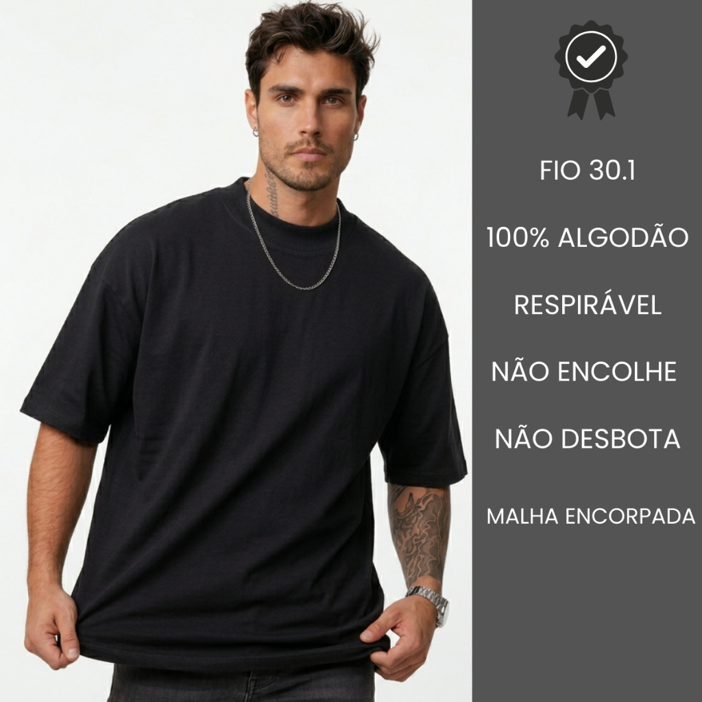 Camiseta Oversized Masculina 100% Algodão Premium — Conforto, Estilo e Durabilidade 👕 Se você procura uma camiseta oversized masculina com qualidade premium, caimento moderno e conforto real, esta é a escolha ideal para elevar qualquer look. Disponível em diversas cores: Preto, Branco, OFF White, Caqui, Verde Musgo, Azul Marinho, Bordô e Marrom. Produzida em algodão 100% premium fio 30.1, ela entrega toque macio, alta respirabilidade e excelente durabilidade, perfeita para quem valoriza estilo e conforto no dia a dia. 💎 Por que escolher essa camiseta? Porque ela combina qualidade premium, conforto superior e estilo moderno em uma peça versátil que pode ser usada em praticamente qualquer ocasião. Uma camiseta feita para quem valoriza estilo, conforto e durabilidade no dia a dia. Ideal para qualquer ocasião: Rolês casuais, Shows, Looks streetwear, Dia a dia, Sobreposições com jaquetas ou camisas, Treinos em academia ou ao ar livre. ✔ Escolha ideal para quem busca conforto, qualidade e estilo em uma única peça. Principais Benefícios: ✅ 100% algodão premium ✅ Fio 30.1 de alta qualidade ✅ Gramatura 175g ✅ Modelagem oversized moderna ✅ Gola canelada reforçada 4cm ✅ Costura dupla ombro a ombro ✅ Não encolhe ✅ Não desbota ✅ Diversas cores disponíveis Dúvidas? Nos envie mensagem no chat, Será um prazer responder! Caso não tenha encontrado o kit com cores que deseje, nos envie no chat!