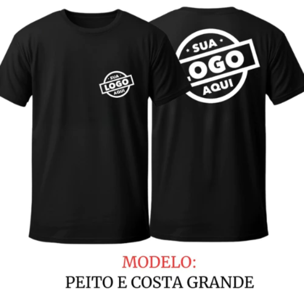 **Kit 2 Camisetas Personalizadas Premium - Sua Logo Aqui** 👕✨ Eleve o nível da sua marca ou evento com nossas camisetas de linha exclusiva. Conforto, durabilidade e uma estampa que impressiona. **✅ Por que escolher nossa Linha Premium?** :** O melhor do poliéster , toque macio e maior resistência. * **Acabamento Reforçado:** Costura ombro a ombro que garante melhor caimento. * **Tecnologia Anti-Pilling:** Não faz "bolinhas" e não desbota. * **Pré-encolhida:** Lavou, tá nova! Não encolhe após a lavagem. **📏 Guia de Tamanhos (Altura x Largura):** | Tamanho | Altura | Largura | | --- | --- | --- | | **P** | 64 cm | 48 cm | | **M** | 66 cm | 50 cm | | **G** | 70 cm | 53 cm | | **GG** | 72 cm | 55 cm | *(Dica: Compare as medidas com uma peça que você já tenha em casa!)* **🧼 Dicas para sua Camiseta durar anos:** 1. Lave preferencialmente à mão ou ciclo delicado. 2. Use água fria e sabão neutro. 3. Seque sempre à sombra. 4. **Importante:** Nunca passe o ferro quente diretamente sobre a estampa. _________________________________________________________________________________________________________________ **🚀 Como enviar sua logo?** Após a confirmação da compra, entre em contato conosco pelo chat para enviar o arquivo e definir os detalhes da personalização. Estamos prontos para te atender! **ATENÇÃO!!!!!!** Não oferecemos serviço de desenvolvimento de arte. Portanto, ela deve ser enviada pronta em formato JPG de alta resolução, Ai, PDF ou CDR. Arquivos enviados em baixa resolução afetarão a qualidade da personalização do produto. Prazo para personalização e envio é de 5 dias úteis. --- **