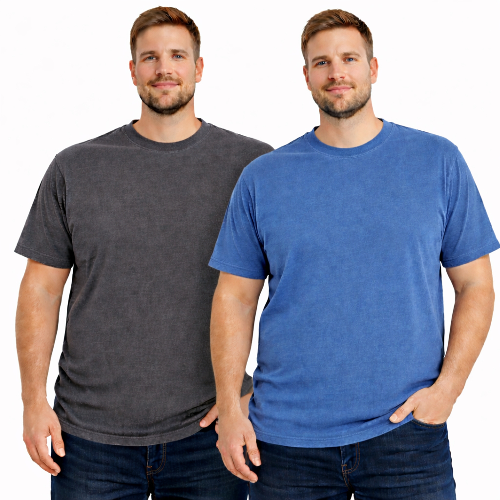 Kit 2 Camisetas Estonadas Plus Size Masculinas – 100% Algodão | Malha PremiumO Kit com 2 Camisetas Estonadas Plus Size Masculinas é ideal para quem busca conforto, qualidade e estilo no dia a dia. Produzidas em 100% algodão com malha premium, as camisetas possuem toque macio, ótima respirabilidade e excelente durabilidade. O processo de estonagem do tecido proporciona um visual moderno e levemente vintage, deixando cada peça com um estilo único. A modelagem plus size garante conforto e ótimo caimento para quem veste G2, G3 e G4. ⭐ Destaques do Produto ✔ Kit com 2 camisetas masculinas ✔ Modelagem Plus Size (G2 ao G4) ✔ 100% Algodão ✔ Malha Premium ✔ Tecido Estonado (visual moderno) ✔ Gola Redonda Canelada 👕 Características: Produto: Camiseta masculina estonada Material: 100% algodão Tecido: Malha premium Gola: Redonda canelada Modelagem: Plus size