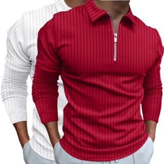 Kit 2 Camisetas Polo Manga Longa Camisa Com Ziper Masculina Malha Canelada Camiseta Camisa