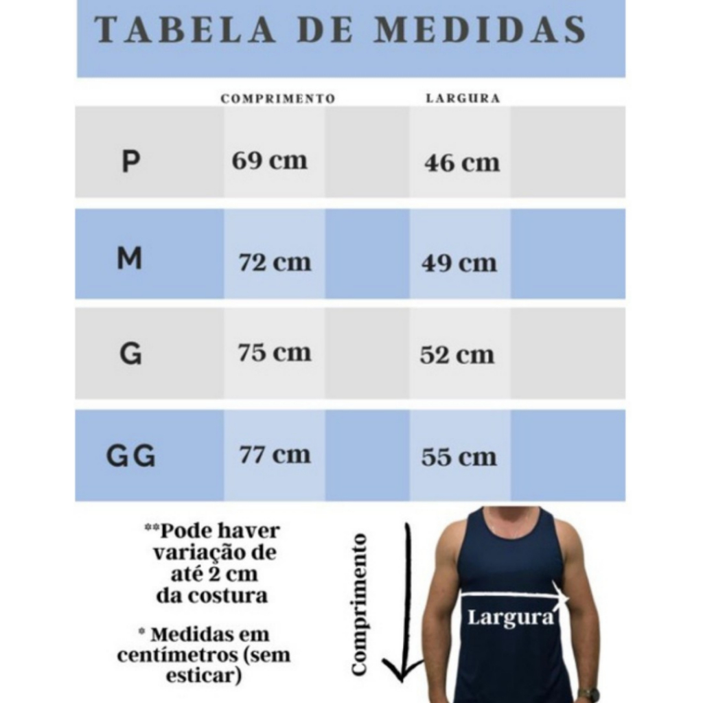 Kit 2 Camisetas Regata Dry Masculina Premium Fitness para Treino e Academia A Camiseta Regata Masculina é a escolha perfeita para quem busca qualidade e estilo na hora de se exercitar. Com um design moderno e arrojado, ela é confeccionada em malha leve, que garante a eliminação da transpiração e mantém o corpo seco durante toda a atividade física. Além disso, seu corte anatômico proporciona liberdade nos movimentos, permitindo que você se movimente com conforto e sem restrições mesmo nos treinos mais intensos. Além disso, seu acabamento Premium garante durabilidade e resistência, tornando-a a companhia perfeita para suas atividades físicas. Fabricação Própria Controle de qualidade rigoroso em todas as etapas de produção. Utilizamos materiais de alta qualidade, que proporcionam durabilidade e resistência à peça. Você pode ter certeza de que estará adquirindo um produto de excelência e que irá durar por muito tempo em seu guarda-roupa. Kit com 2 Unidades da Regata Masculina. - Composição: 100% Poliéster; - Marca Própria; - Malha Leve; - Não fica transparente no corpo; - Tecido Leve, não dá bolinhas e nem pega pelos; - Tamanhos: P, M, G e GG; - Cores: Preto, Azul Marinho, Cinza, Vermelho Marsala, Branco, Azul Royal e Verde. *À PARTIR DE JANEIRO/2025 AS CAMISETAS E REGATAS NÃO TERÃO MAIS A LOGO NO PEITO.* Obs.: A tonalidade dos tecidos podem variar de acordo com o seu monitor. Tabela de medidas entre as fotos do anúncio. Qualquer dúvida estamos a disposição no Chat. Agradecemos a sua visita!