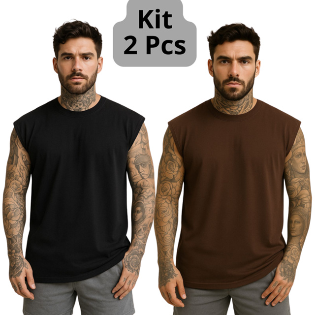 Kit 2 Camisetas Regata Masculina Oversized Academia Colete Masculino Machão Longline Sem Estampa