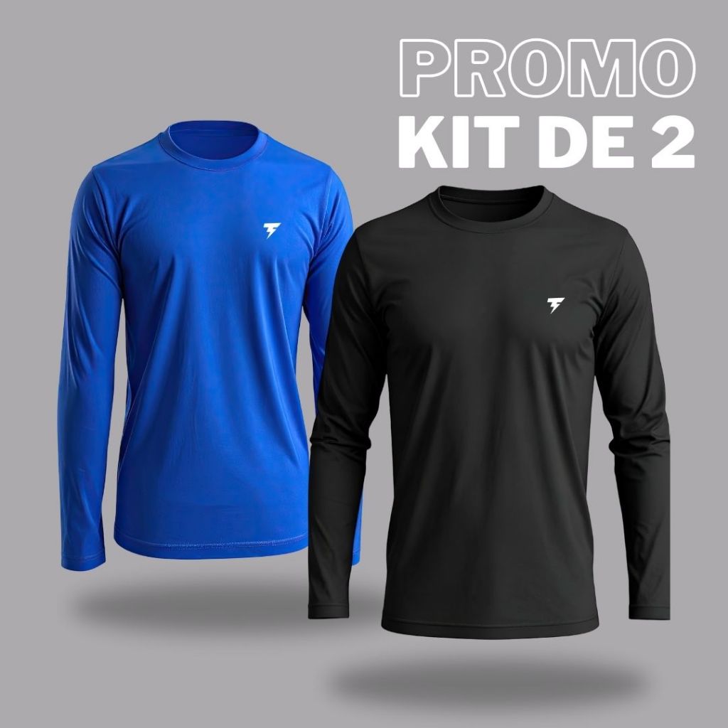 Kit 2 Camisetas Uv50 Proteção Moda Praia Moto Ciclismo Manga Longa Tecido Gelado