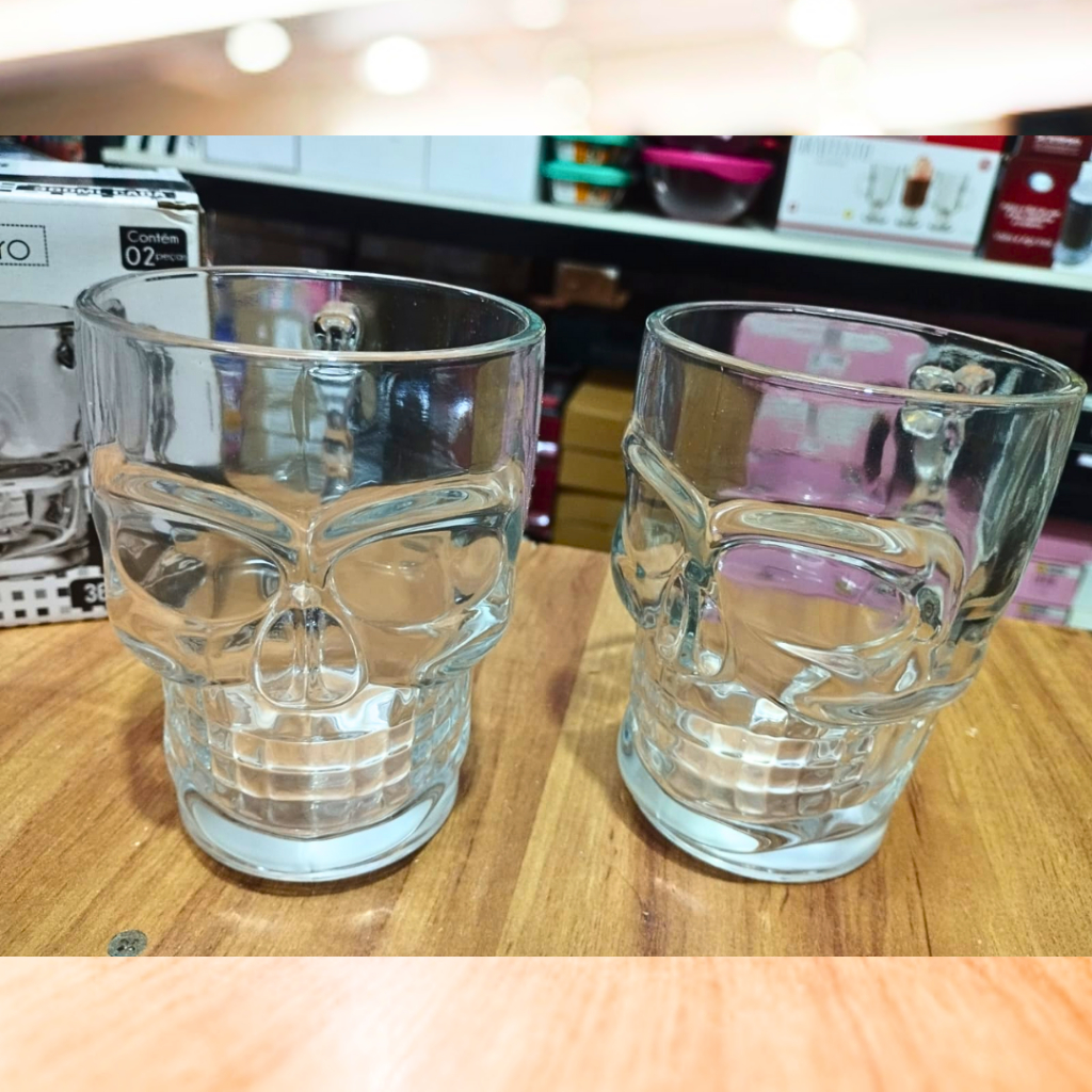 Kit 2 Canecas Vidro Caveira para Cerveja e Chopp 360ml - COSY