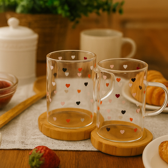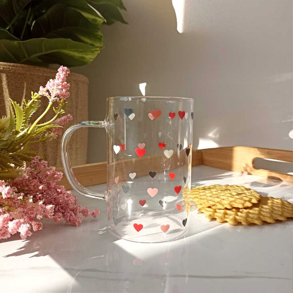 Kit 2 Canecas Xícaras Café Chá De Vidro Borossilicato C/ Corações 280ml - Lyor