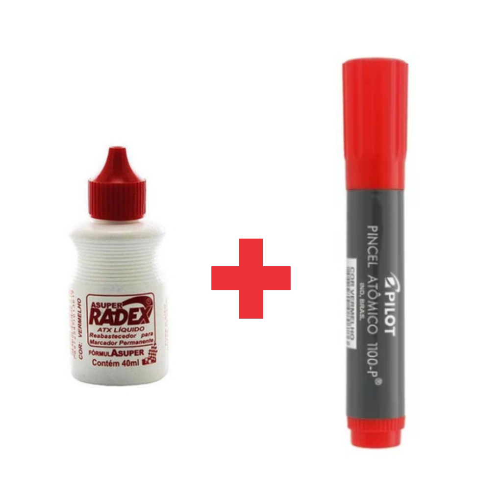 2 Canetões + 2 Tintas Pincel Marcador Permanente 40ml Preta e Vermelha PODE USAR, RECARREGAR E USAR NOVAMENTE Canetão + Tinta para pincel marcador, ideal para reativar o funcionamento de canetas e pinceis marcadores permanentes. À base de álcool, ela proporciona um uso maior antes do descarte de canetas e pinceis, com qualidade e eficiência. - Cores Disponíveis: preto e vermelho; - Conteúdo tinta: 40 ml; - Tinta permanente à base de álcool.