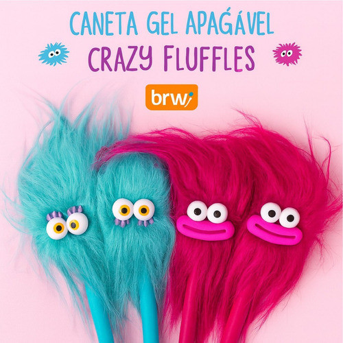 Kit 2 Canetas Gel Apagável Crazy Fluffles 0,7mm Divertidas, Criativas e com Pelúcia Rosa e Azul BRW