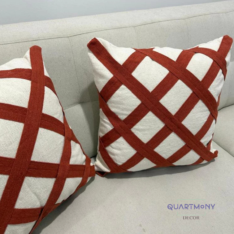 Kit 2 Capa Almofada Losango Terracota Artesanal Decorativa Estilo Rustica Algodao Carnaval