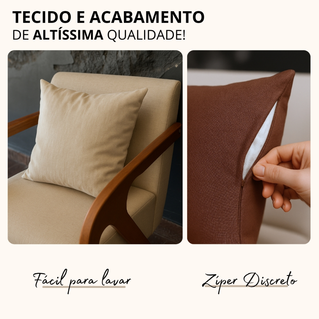 Kit 2 Capa De Almofada Linho Lisa 43x43cm Zíper Invisível Lavável Moderna Elegante Alta Qualidade