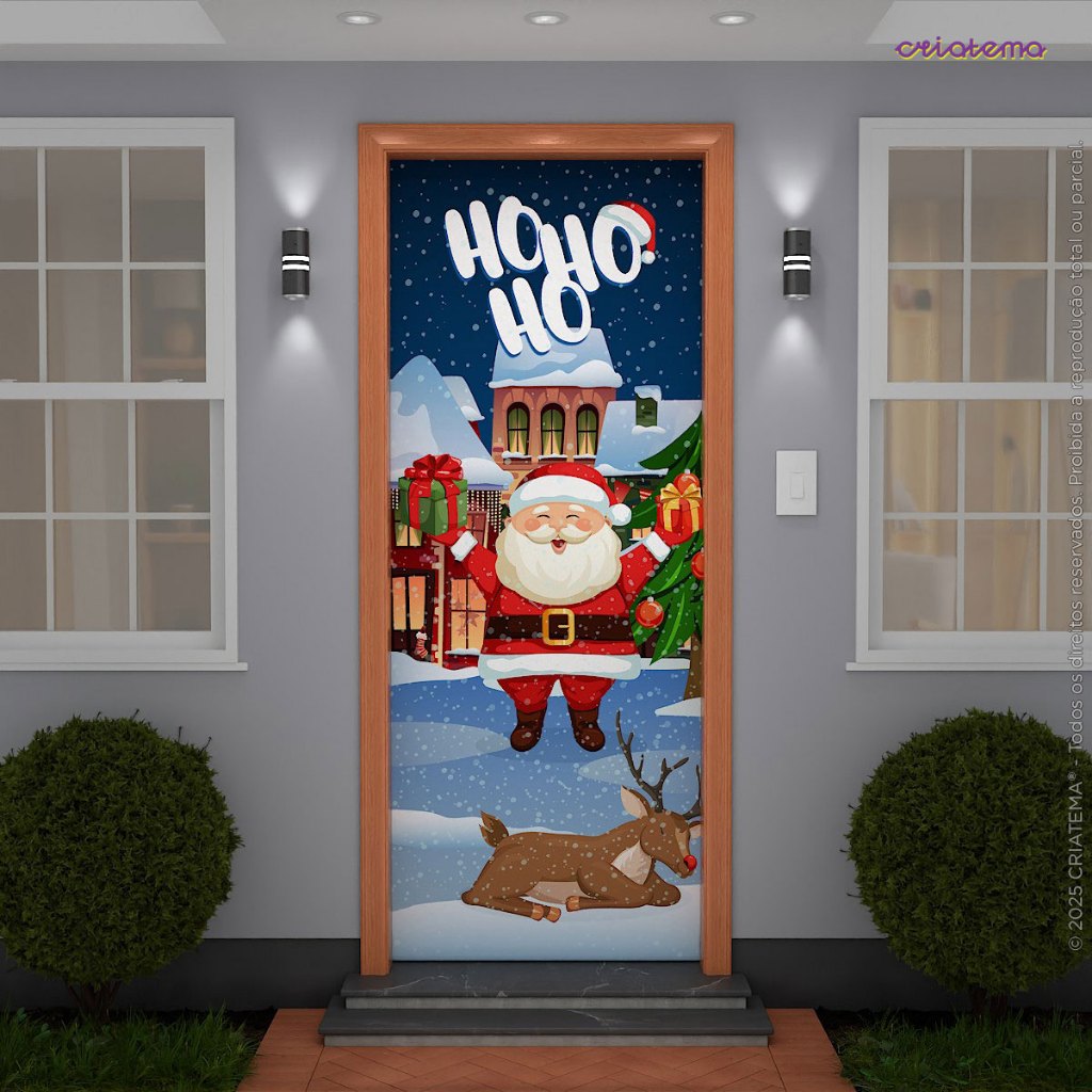 Kit 2 Capa de Porta Natal + Ano Novo Em Tecido Painel Veste Porta Decorativo Sublimado 0,85x2,10m