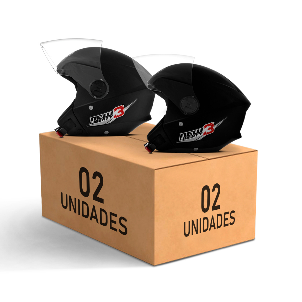O Kit com 2 Capacetes New Liberty 3 foi criado para levar a você o melhor custo benefício do mercado na hora da sua compra, você leva vários capacetes pagando apenas um frete, tudo com a grande qualidade dos produtos Pro Tork. Este capacete aberto lhe dará conforto e uma sensação de liberdade em cada quilômetro que você viajar. Graças ao seu desenho, você terá um amplo campo de visão e audição, o que lhe permitirá ficar atento aos fatores externos. Especificações do Produto: - Casco injetado em ABS de alto impacto; - Cinta Jugular com sistema de fecho micro-métrico; - Forro Antialérgico; - Viseira transparente em policarbonato com 2mm de espessura; - Aprovado pelo INMETRO; - Estilo: Street/Urbano; - Fabricado nos tamanhos: 56, 58 e 60; - Acompanha adesivo refletivo; - Marca: Pro Tork. IMPORTANTE: - APÓS A CONFIRMAÇÃO DO SEU PEDIDO, NÃO SERÁ POSSÍVEL REALIZAR NENHUM TIPO DE ALTERAÇÃO NOS PRODUTOS, OS MESMOS IRÃO CONFORME SELECIONADO NO ATO DA COMPRA. - Não use produtos em embalagens com aerosol, pois contêm substâncias que danificam os orifícios de ventilação e o visor. Dicas: - É importante escolher um capacete bem justo, pois a tendência é que ele se ajuste com o uso. Portanto, se a sua medida é 56 ou 57 cm, escolha um 56 sem medo. Como fazer a limpeza: - No caso de capacetes sem forração removível, o indicado é utilizar um pano úmido com detergente neutro e passá-lo nas partes internas, depois deixar secar na sombra. Se você deixar secá-lo no sol, a alta temperatura pode danificar os materiais internos do capacete e, por consequência, fazê-lo perder suas propriedades de proteção.