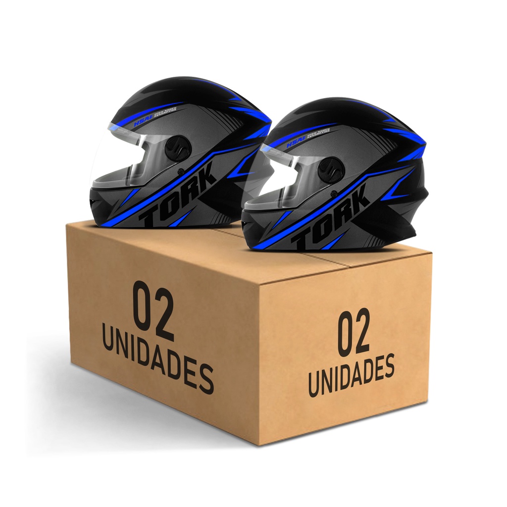 Kit 2 Capacetes R8 Fechado Viseira Cristal Integral Pro Tork Azul Com Várias Combinações