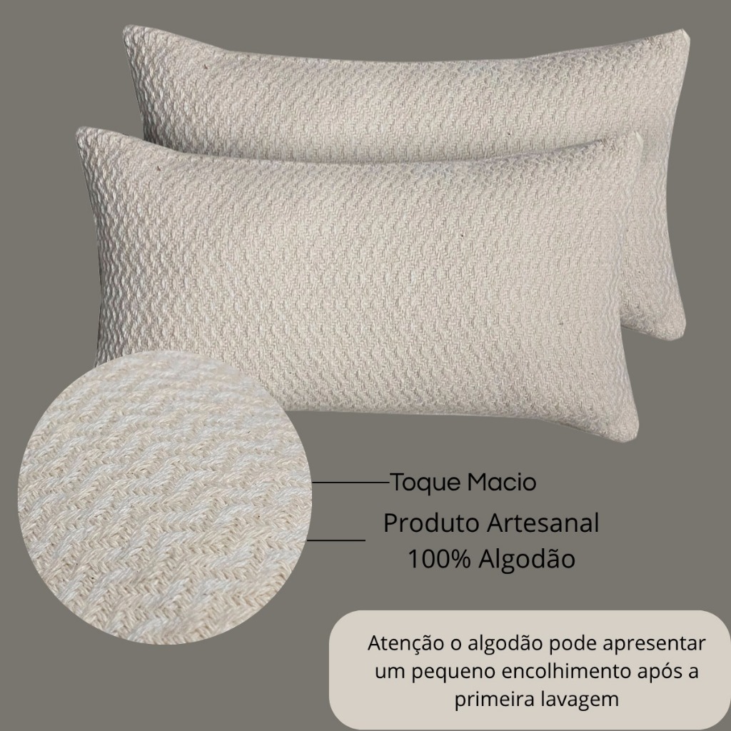 AVISO IMPORTANTE !!! 👉 - Recomendamos que a compra de mais de uma peça seja feita no mesmo pedido, pois por se tratar de produto de 100% algodão pode haver pequenas variações de tonalidade entre lotes. Em alguns casos, o pedido pode apresentar leves diferenças de cor, o que é considerado normal. ✨ Kit com 2 Capas de Almofada Formato Bisnaga – 26x44cm ✨ Deixe sua decoração mais charmosa e aconchegante com esse lindo kit de capas de almofada! Produzidas em material resistente e de fácil manutenção, as capas são práticas, modernas e perfeitas para transformar o ambiente sem precisar gastar muito. ✔️ Formato bisnaga – Medida de 26x44cm, ideal para dar um toque diferenciado no sofá, cama ou poltrona. ✔️ Versátil – Combina facilmente com diferentes estilos de decoração, trazendo mais elegância e conforto para sala ou quarto. ✔️ Praticidade – Possui fechamento em zíper, o que facilita a colocação e remoção do enchimento. ✔️ Durabilidade – Feitas com tecido de qualidade, são resistentes e fáceis de limpar, garantindo maior vida útil. ✔️ Decoração acessível – Em poucos segundos você renova o visual do ambiente de forma simples e estilosa. 👉 Com este kit, sua casa ganha conforto, beleza e personalidade em cada detalhe. ✅ Material resistente e durável ✅ Toque macio e confortável ✅ Fácil de limpar e manter ✅ Disponível em várias cores e tamanhos Perguntas frequentes (FAQs) - O tecido é resistente? Sim, o tecido é de alta qualidade, ideal para uso contínuo. - O produto pode encolher após a lavagem? Sim. Por ser 100% algodão, pode haver um encolhimento natural de 8% a 10% após a primeira lavagem.