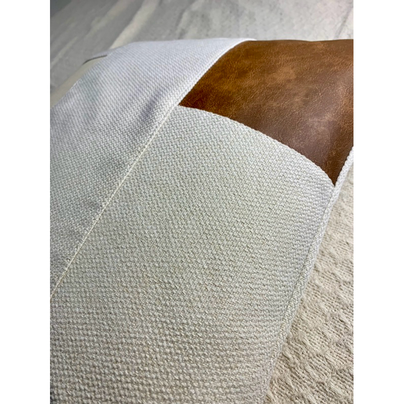 Kit 2 Capas de Almofada Luxo Bege Off White com Detalhe Caramelo 43x43 | Zíper Invisível | Decoração Moderna Sofisticada