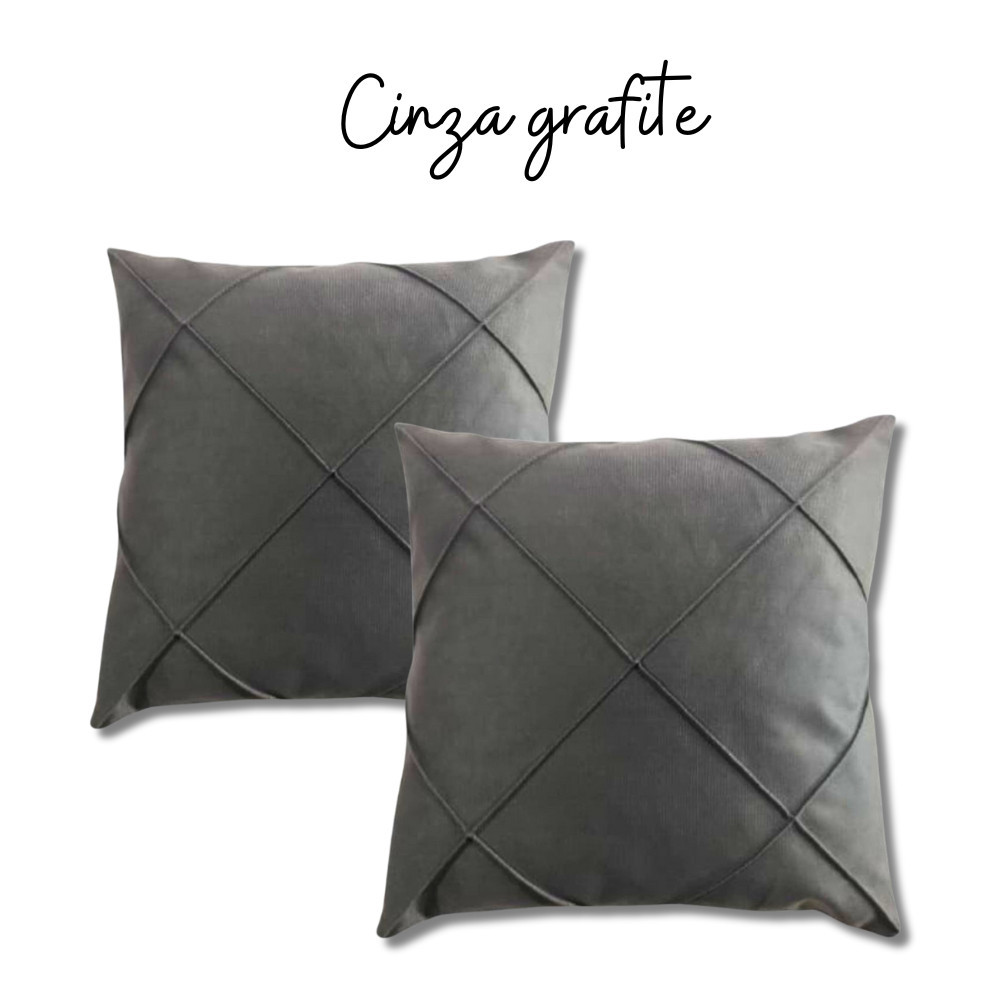 kit 2 capas de almofada luxo para sala e quarto drapeada suede desenho losango
