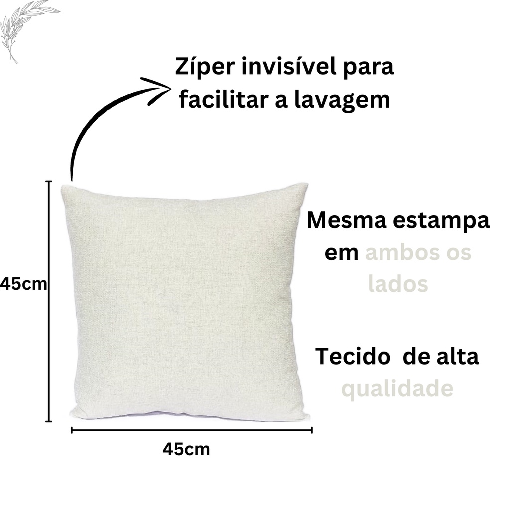 Capas De Almofada Quadradas Linho Cru com Zíper Invisível As almofadas normalmente são uma das principais peças para uma decoração cheia de estilo e harmônica, para receber convidados ou para descansar com elas. Deixe sua sala, escritório, quarto e diversos outros ambientes decorados com as nossas capas de almofada que proporciona máximo conforto e beleza, Características: Almofada Estampada Composição: 58% algodão e 42% poliéster Comprimento: 45 cm Largura: 45 cm Especificações: Não acompanha enchimento Mesma estampa/cor em ambos os lados Estampas com cores vivas Zíper Invisível Ótimo acabamento Fácil de lavar e de colocar o refil Ótimo custo benéfico