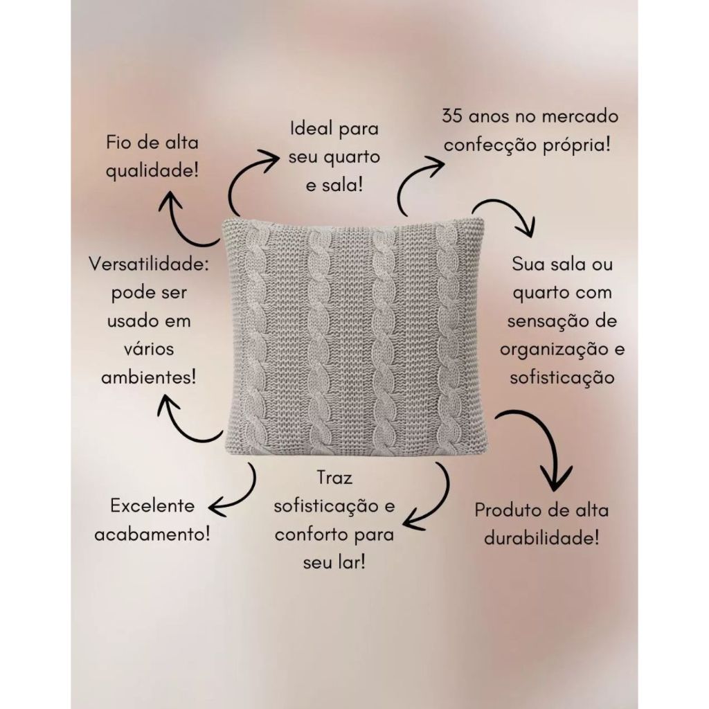 KIT COM 2 CAPA DE ALMOFADA TRICOT MODELO NOVA YORK - APENAS CAPA... KIT COMPOSTO POR: 2- 45x45cm; 2- 50x50cm; 2- 60x40cm; OU 2- 50x30cm. Valor Unitário. A Almofada Tricot transmite o conforto e a originalidade na medida certa para completar a decoração do jeitinho que você sonhou! Fofinha e elegante, essa almofada de tricot, com trama trança, vai ficar um charme em ambientes de vários estilos, pois sua beleza atemporal combina perfeitamente com espaços clássicos e modernos.... Five Star Malhas... *FOTOS PRÓPRIAS COM DIREITOS AUTORAIS. NÃO USAR SEM PERMISSÃO....